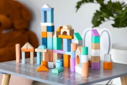 Wooden Blocks Ecotoys are the perfect choice for children who are developing their motor skills and imagination. Thanks to the combination of different shapes and colors, they provide safe and fun play.