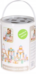 Wooden Blocks 100 pcs in Bucket with Sorter Ecotoys