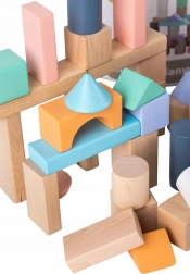 Wooden blocks, safe even for the youngest children, are designed to be easy to grasp and promote the development of manual skills and spatial imagination. Each block is painted with child-safe colors.