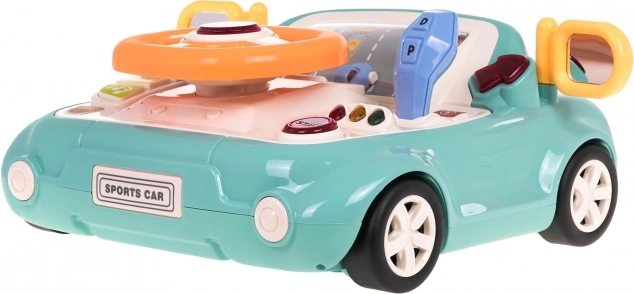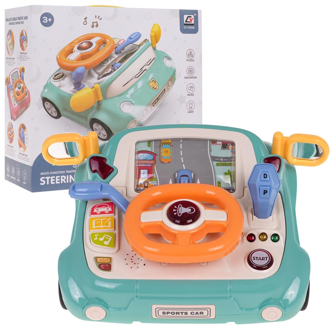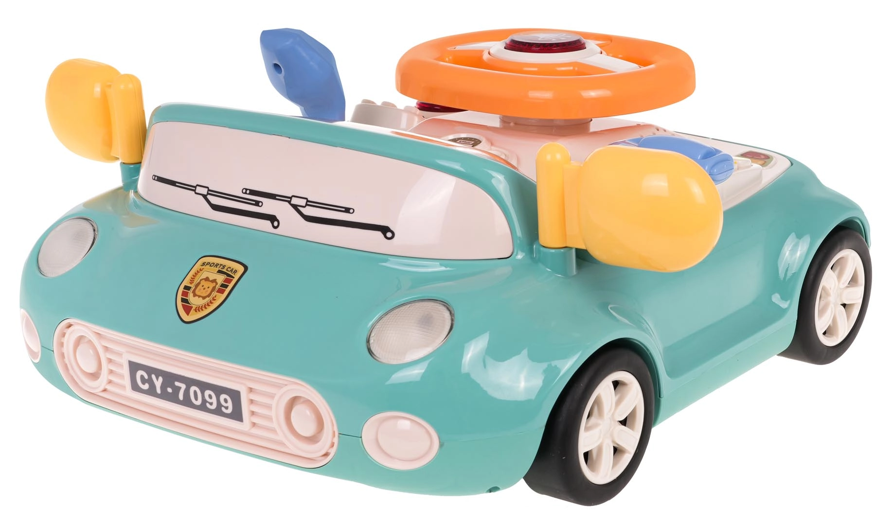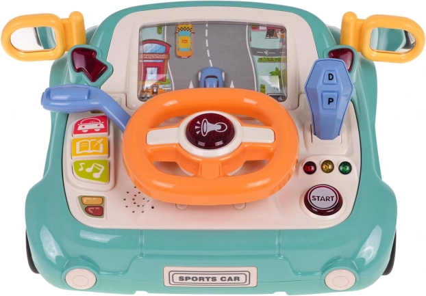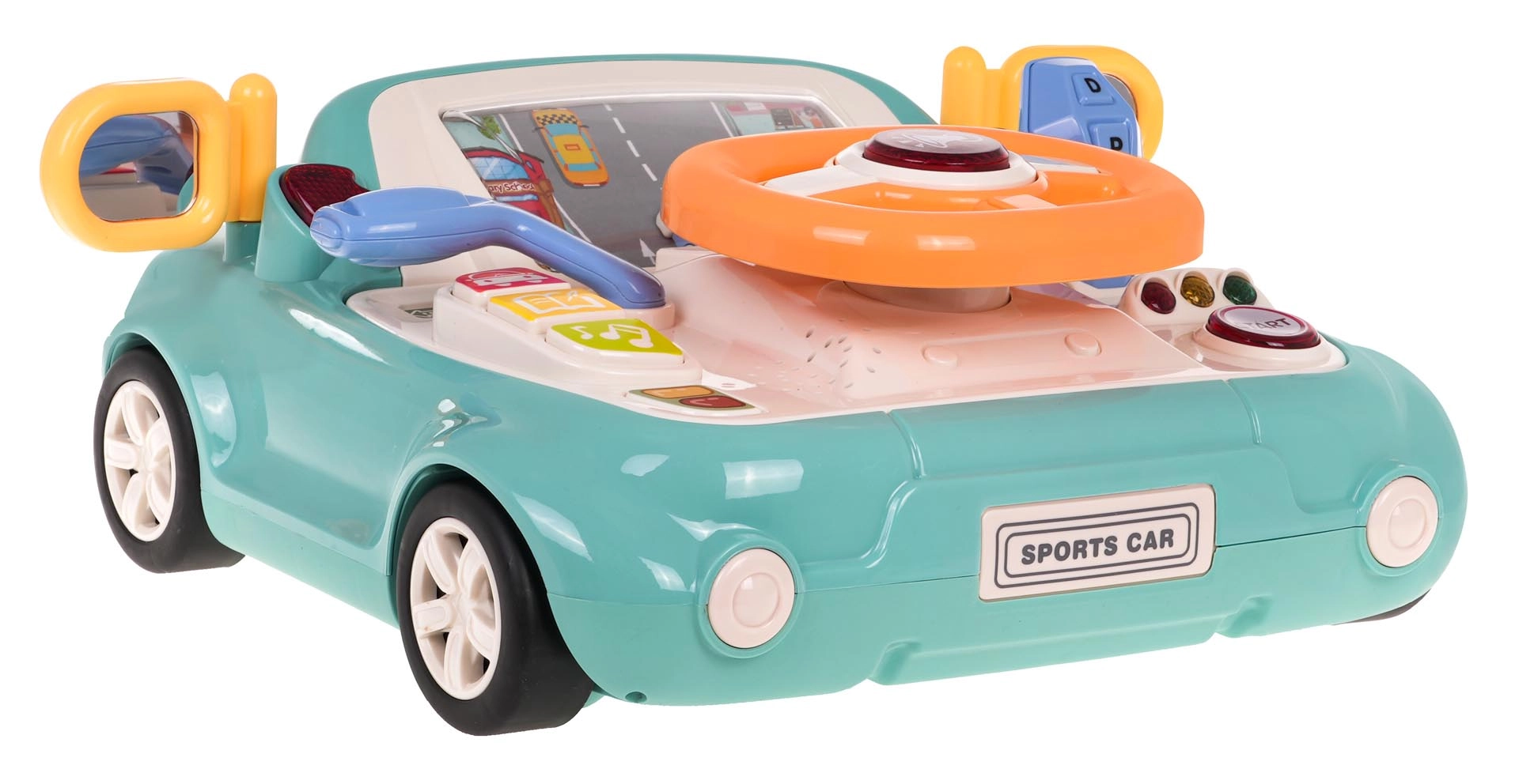 Headlights, indicators, music, and engine sounds are complemented by a display with a “scrolling” road and a little car that the child controls for even more fun.