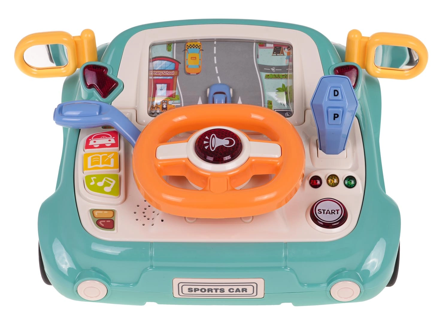 A rotating steering wheel with a backlit horn, a gear lever, and functional turn signals give kids the feeling of real driving and motivate them to explore road rules.