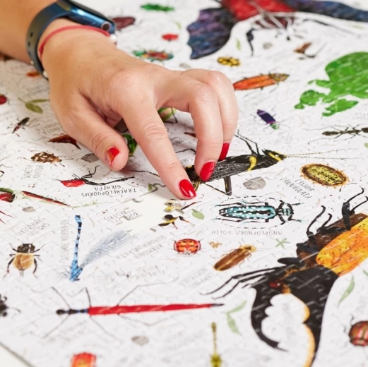 Discover the beauty and diversity of fascinating insects from around the world with the PUZZLOVE puzzle. This set of 1000 pieces with an original, artist-created illustration is made in Poland and offers pleasant relaxation as well as a workout for the mind; once completed, it forms an image measuring 48 × 68 cm.
