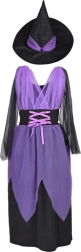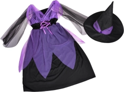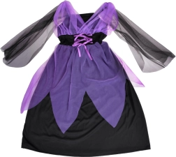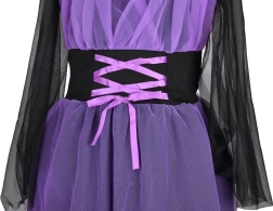 An enchanting kids’ witch costume for Halloween, carnivals, and birthday parties. Includes purple-and-black dress and a pointed hat. Thanks to the stretchy fabric, the costume is comfortable and features striking tulle and lace-up detailing. Ideal for dress-up, school performances, and imaginative play. Comfortable to wear, a magical look, and easy dressing will delight every little witch.
