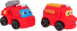 A colorful set for little firefighters including 2 firefighter figures and 2 adorable fire trucks with rattles. Ideal for children’s imagination and role play, made in vibrant colors and suitable for children from 3 years. The figures have rotating heads, and one car and the figure with the yellow helmet hide a rattle for even more fun.