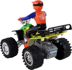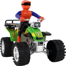 The ATV features realistic details including large off-road wheels and handlebars, enhancing the play experience.