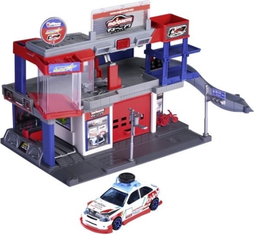 Three-story Majorette Japan Series tuning garage with lights and sounds, elevator, and HONDA Civic Type R EK9 1:64 model. A great gift for children aged 5+.