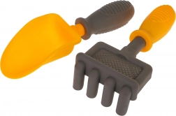 The set also includes a rake and a shovel. These tools allow kids to play creatively and develop their building skills in sand or gravel.