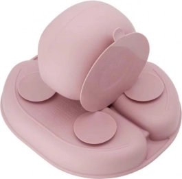 The raised sides of the MoMi AMI tableware make it easier for a child to scoop food onto cutlery, and the three-section plate helps divide food into portions. Non-slip suction bases under the bowl and plate keep them securely on the table or on a highchair tray.