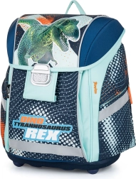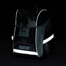 A lightweight, ergonomic school set for young pupils with a popular T-Rex theme. It includes a lightweight backpack 900 g with breathable padding and a chest strap, plus a practical gym sack and a single-compartment pencil case without contents. The set offers plenty of pockets, an internal organizer and reflective elements for safety on the way to school.