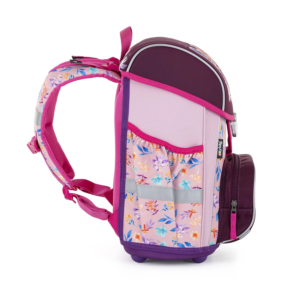 The Premium series school satchel is anatomically shaped to ensure correct positioning on the back. A reinforced back panel and internal frame maintain the backpack’s stable shape. The padding is made from a comfortable, breathable material, and the wide, cushioned straps are designed to fit perfectly and distribute the weight evenly across the child’s shoulders. The satchel consists of one spacious compartment that easily holds all school supplies for children in 1st and 2nd grade. The bottom of the backpack is made from a sturdy material, protecting the contents from tipping over and spilling. It closes with a safety buckle. The front pocket is intended for snacks, and there are numerous reflective elements to improve visibility. Capacity: 28 l. Load capacity: 8 kg.