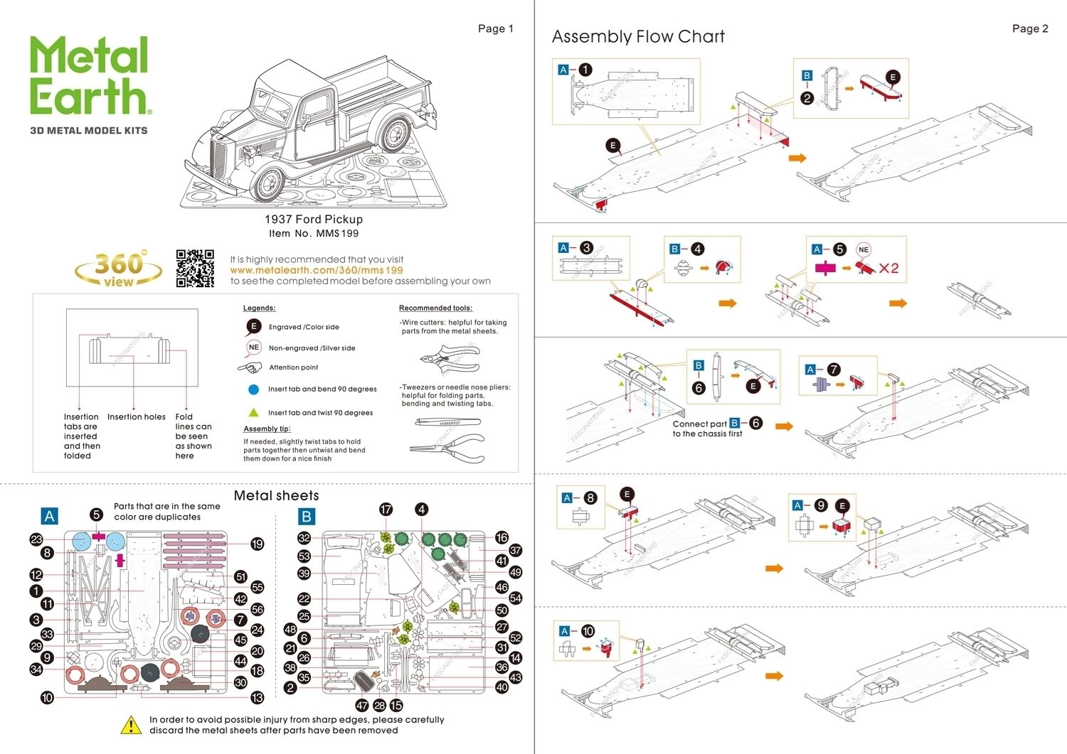 Build the legendary classic FORD Pick-Up 1937 from precisely engraved METAL EARTH sheets. This metal 3D puzzle assembles without glue, rewards you with authentic details, and makes a captivating decoration for a display case, office, or home.