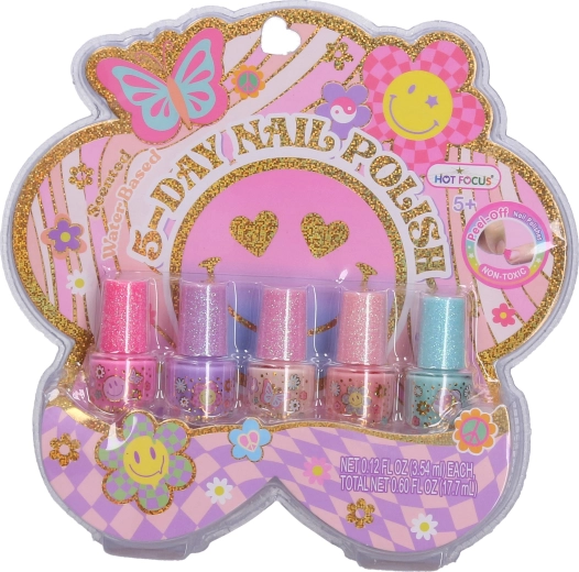 This set of water-based nail polishes includes five different shades that easily perfect your style. Their special water-based formulation ensures that the polish easily peels off once dry, allowing for easy color changes without damaging your nails.