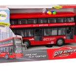 This finely detailed double-decker bus in 1:16 scale will delight all young city transport drivers. On the roof you’ll find four interactive buttons that trigger realistic sounds—horn, reverse signal, and street noise. The interior is LED-lit and gradually changes colors to red, green, and blue, creating an impressive play atmosphere.