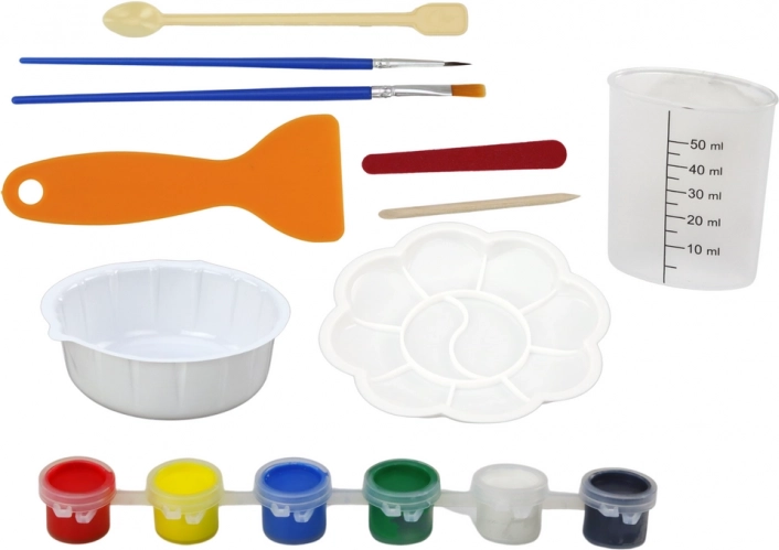 The set includes everything needed to create figurines, from plaster to painting tools.