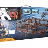 Discover an action set for young soldiers: a military fort with a helicopter, two shooting vehicles, and light and sound effects. The fort perimeter is 177 cm, the helicopter measures 25 cm, and the soldier figures are 10 cm. The package includes 3× AG10 batteries for instant play.