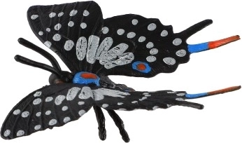 A realistic plastic butterfly model inspired by the swallowtail (Papilio), featuring finely detailed wings with contrasting patterns. Ideal as a decoration, for educational purposes, and for natural history collections. The compact 6 cm size fits perfectly on a desk, shelf, or in a child’s room.