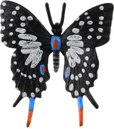 This quality butterfly model captures the typical features of the Papilio genus—elegant black wings with white spots and subtle blue and red accents. Thanks to its realistic execution, it’s a great addition for nature lovers, schools, and museums.
