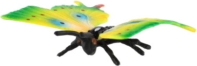 Decorative plastic butterfly in the shape of a swallowtail in shades of green and yellow, 5.5 cm long, perfect for enhancing decor, scrapbooks, and children's play. It features finely detailed wings with a striking pattern and looks very realistic. Ideal for decorations, crafting, educational activities, and themed arrangements.