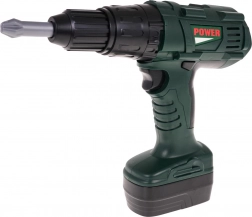 The drill-screwdriver is powered by two AA batteries (not included) and features interchangeable bits. The individual parts are made from high-quality plastic, ensuring safety and longevity.
