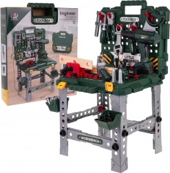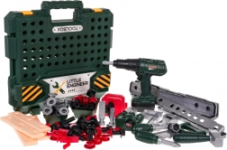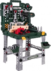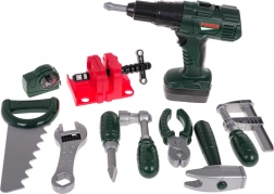 It includes a battery-operated drill-screwdriver that truly drills and screws bolts, along with realistic sound effects. It also contains a range of other tools such as a saw, hammer, or adjustable wrench, helping children develop fine motor skills and creativity.