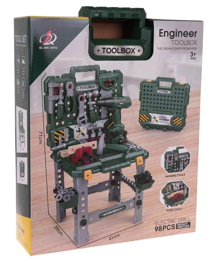 The children's 2-in-1 tool offers the perfect combination of fun and learning. With 98 components, children can easily convert parts into a worktable or tool case.