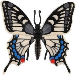 This decorative butterfly inspired by the species Old World Swallowtail (Papilio machaon) stands out with precisely rendered wings featuring contrasting patterns in black, white, and blue. Its realistic appearance enhances a natural atmosphere in a child’s room, study, or living space.