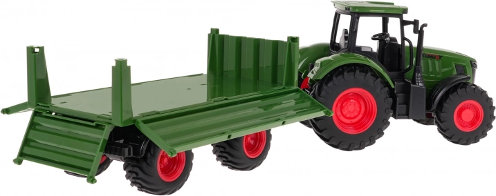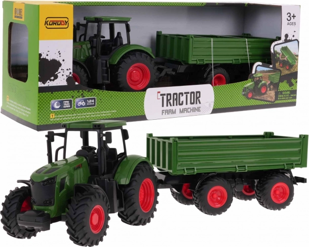 . | A 1:24 scale tractor with trailer for children aged 3 and up. The tractor is a highly realistic reproduction of a real agricultural machine, with detailed features. It is made of top-quality plastic in vibrant colors. It has large rubber tires for good grip. The trailer can be detached; its side boards can be lowered and the rear board raised. .. Tractor features: . - suitable for children over 3 years old, .- made from the highest quality materials, .- 1:24 scale, .- moving parts: trailer (up, down), - lowered side boards and raised rear board, .- rubber tires, .- realistic reproduction, .- free-rolling moving wheel. . |