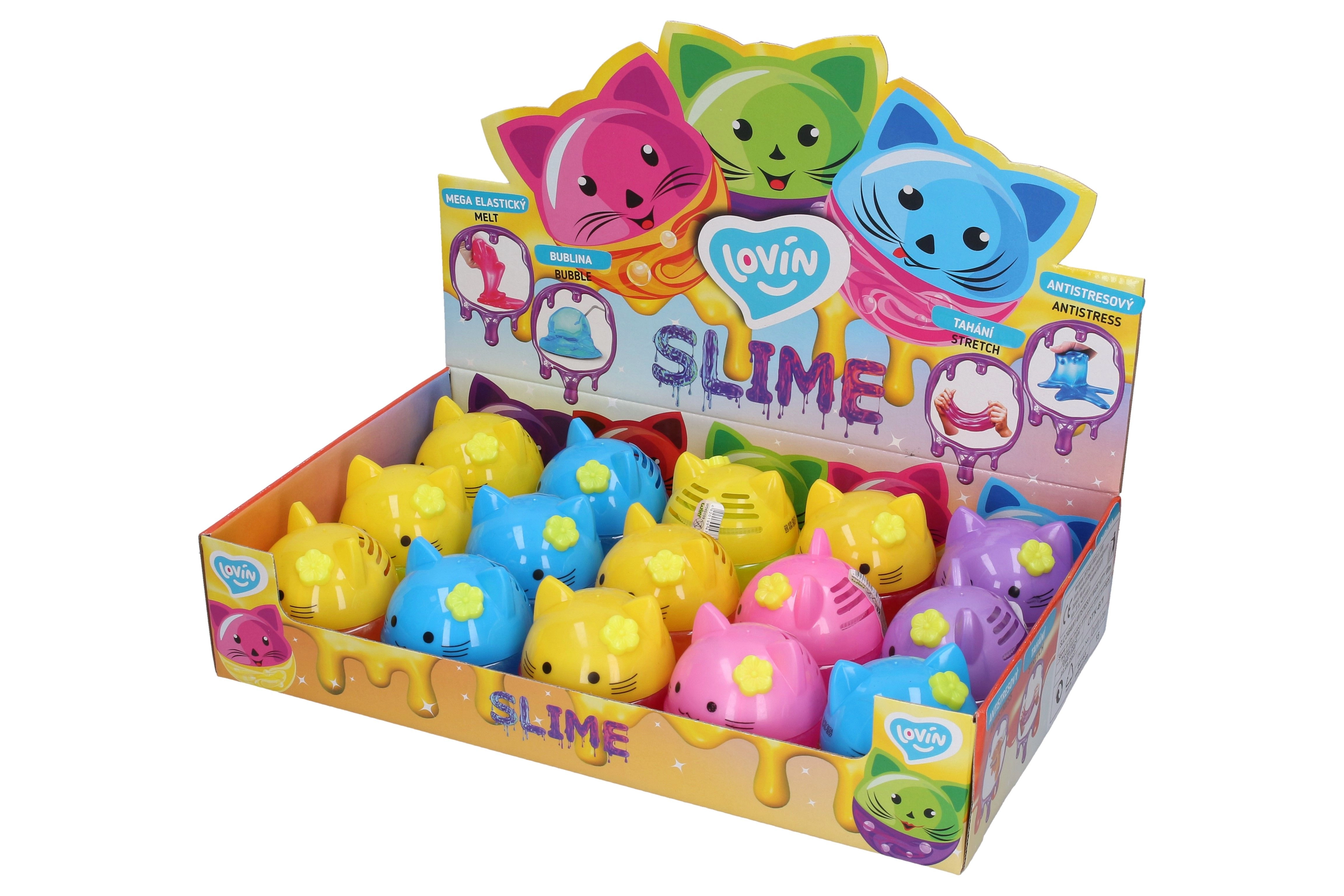 A fun and creative slime with a cat theme for kids and adults. This shaping glitter slime with a volume of 100 ml is ideal for playing, squishing, and modeling. A cat sticker is included in the package. Available in multiple color variants.