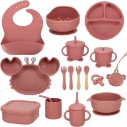 Silicone Tableware Set for Children Crab 19 pcs Dark Pink