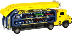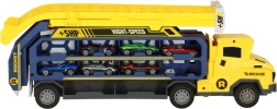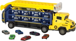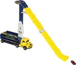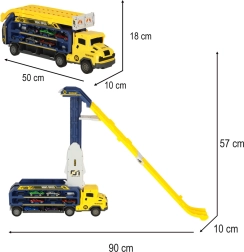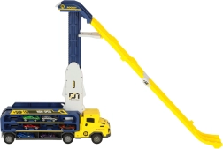 This multifunctional car transporter quickly transforms into an impressive dual-lane racetrack. Kids can carry up to six small cars and then launch them on parallel lanes for thrilling races. The attractive yellow–blue design invites play and supports fine motor skills and hand–eye coordination.