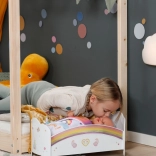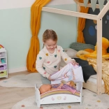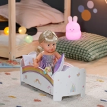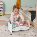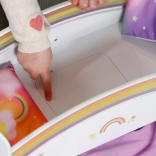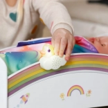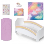 This adorable rainbow crib for BABY born dolls turns bedtime into a magical ritual. It features a glowing night light with lullaby, reversible bedding, and a design you can decorate with stickers. There’s also a secret compartment under the mattress for tiny treasures.