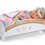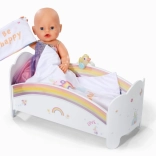 Create a cozy sleep spot for your doll with the charming BABY born rainbow crib. It boasts gentle pastel rainbow and cloud motifs, a comfy mattress, and a reversible pillow and blanket for extra cuddly comfort.