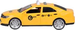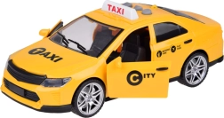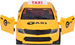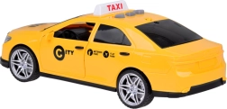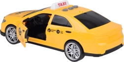 The yellow kids' taxi car offers a realistic city-car look, light and sound effects, and opening doors on both sides. Thanks to the rubber anti-slip wheels, the ride is smooth and quiet. Great for developing imagination, coordination, and learning traffic rules.
