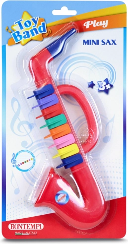 Children's Red Saxophone made of quality plastic with 8 keys offers great fun for young musicians. Made in Italy for maximum safety.
