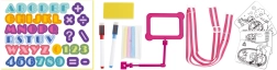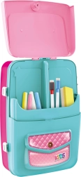 This creative children's backpack in pink color, size 28 cm, is the ideal companion for your child. It includes practical compartments for art tools and a magnetic board for chalk and markers.