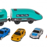 The train runs forward on 2× AAA batteries (not included), and the cars connect with strong magnets for easy and stable coupling.