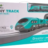 Build your own city with tunnels, a bridge, and a station. This versatile train set supports the development of imagination, motor skills, and team play. High-quality plastic in bright colors ensures durability and long-lasting fun. The train is battery-powered and moves forward, and the carriages connect easily with strong magnets.