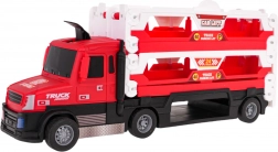 A fun three-level truck with a catapult for kids aged 3+ offers hours of action-packed play. It features rubber tires for stable driving, light and sound effects, and when unfolded it transforms into a long 140 cm racing track. Included are 6 die-cast cars in 1:64 scale and a practical organizer/sorter for the vehicles.