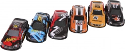 Includes six finely detailed racing cars in 1:64 scale with a durable metal body, ready for instant races.