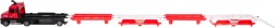 Place a car on the bottom level and press the lever on the truck’s roof. The launcher shoots the car forward along the unfolded track.