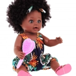 The doll comes with a pink hairbrush, allowing children to care for its hairstyle.