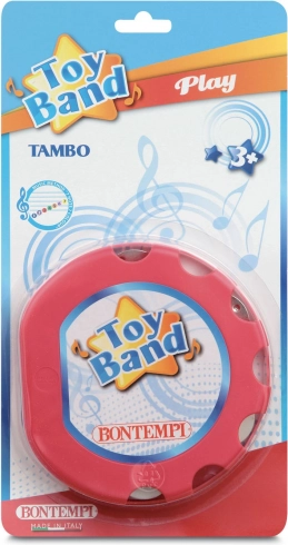 BONTEMPI kids' tambourine for children from 3 years. Lightweight, safe, with metal jingles. Develops rhythm, coordination, and hearing. Ideal for home and preschool.