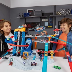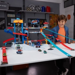 Get ready for a gorilla attack with the largest set of ZURU Metal Machines! This multi-level construction revs up racing cars to the max and ensures a dose of adrenaline. With parking spaces and car stalls, including an elevator, it offers optimal space for up to 20 vehicles.