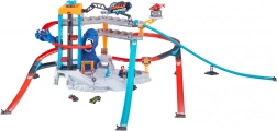 The Racing Track Metal Machines Gorilla Garage comes with repair stations and a platform for a rescue helicopter, which can transport your vehicles. However, gigantic gorilla guards desperately run around, ready to attack! Can you drive through its massive jaws and escape in time?