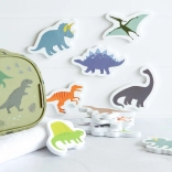 Mess-free bath fun – 14 foam pieces with cute dinosaurs stick to the bathtub walls or bathroom tiles when wet. After the bath, simply store them in the mesh bag with suction cups, which keeps everything together and within reach.