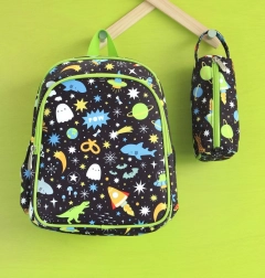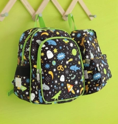 A stylish kids’ backpack with a space theme, perfect for preschool and trips. It offers a spacious main compartment, an insulated front snack pocket, and two side pockets for bottles. For comfort and safety, it features padded shoulder straps, a chest strap to prevent slipping, and a breathable, padded back panel.