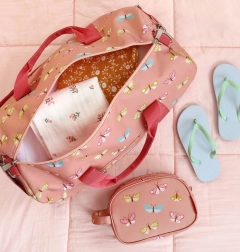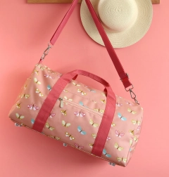 A lightweight and durable children’s travel bag with a butterfly print featuring a spacious main compartment, practical pockets, and a detachable shoulder strap. Ideal for clubs, trips, and as a carry-on bag for the plane.