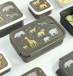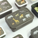 This practical lunch box with a savanna animals motif will delight kids and parents alike. Thanks to the reliable snap-on lid, the contents won’t spill and stay fresh longer. The removable tray with two compartments makes it easy to separate fruit, sandwiches, or snacks.