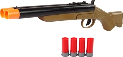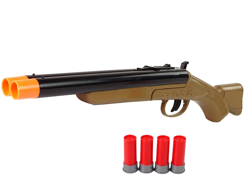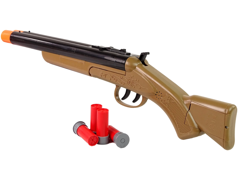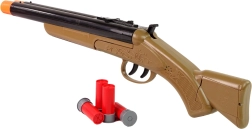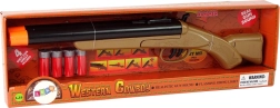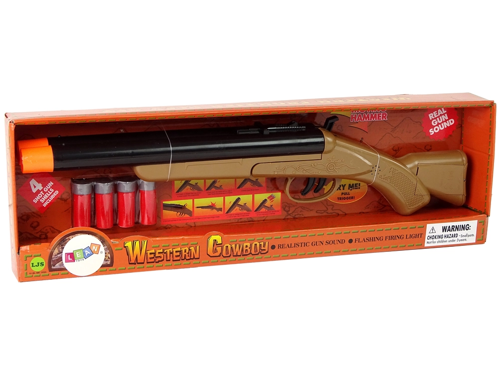 Bring the spirit of the WILD WEST home! This kids' cowboy shotgun offers a realistic look, safe sound effects, and a double trigger for even more fun play. Includes 4 rounds and durable plastic construction for long-lasting use.
