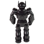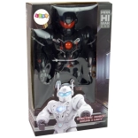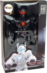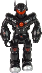 Interactive black robot for kids offers forward walking, light effects, and shooting sounds that spark imagination and develop coordination skills. Durable build, modern look, and a safe design ensure hours of great fun.